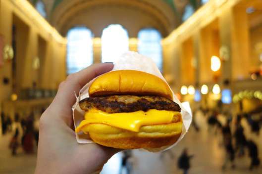 Potato buns. Sausage. Bacon. American cheese. Eggs. Are you hungry yet? That's too bad, you'll have to wait for tomorrow morning, when you can get one of Shake Shack's new breakfast sandwiches at their Grand Central Terminal location (served weekdays from 7:00-10:30 a.m.).
