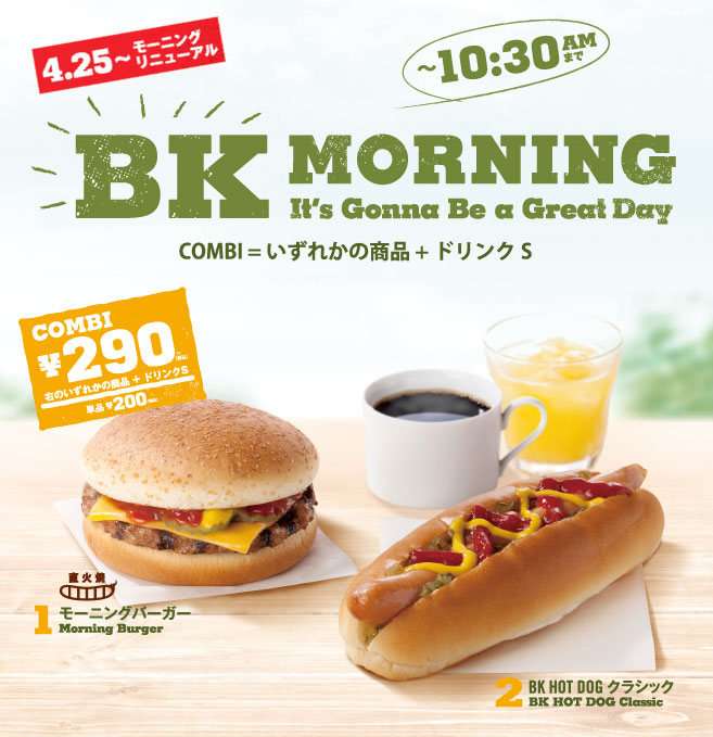 Has revamped their BK Morning breakfast menu over in Japan and it looks suspiciously like lunch, eschewing (American) breakfast staples like eggs and sausage that is offered by rival McDonald's.