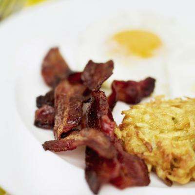 Skip bacon, which contains 155 milligrams of sodium per slice, and a 3.5-ounce serving of breakfast sausage contains 749 milligrams. Opt for low-sodium versions of these meats if you want to eat them for breakfast occasionally. Have shredded white meat chicken or turkey in place of high-salt meats. The poultry can replace bacon and sausage in egg dishes and on breakfast sandwiches and provides you with a good amount of protein to refuel your body and start your day.